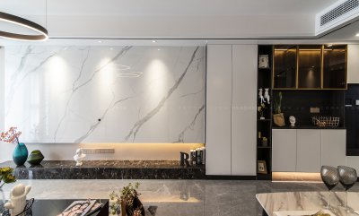 人生最好狀態就是“小滿”,千萬不能大滿,月滿則虧,水滿則溢。好的設計,能與感官對話,能在歲月的洗練中愈顯其價值。客廳以紋理豐富的大理石為基調,配以沉穩大氣的紅褐色黑檀木,為空間注入永不過時的新中式氣息。宜設而設,精在體宜;刪繁去奢,繪事后素