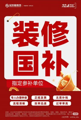 近期裝修的蘇州人注意啦 家裝家居政府補貼(國補)重磅上線! 安然居裝飾企業 也積極響應政府號召 凡在安然居裝飾購置補貼范圍內的商品 即可按裝修合同中相關物品和材料購置價的15%給予補貼 單戶最高補貼可達30000元 近期裝修的蘇州人注意啦 家裝家居政府補貼(國補)重磅上線! 安然居裝飾企業 也積極響應政府號召 凡在安然居裝飾購置補貼范圍內的商品 即可按裝修合同中相關物品和材料購置價的15%給予補貼 單戶最高補貼可達3000